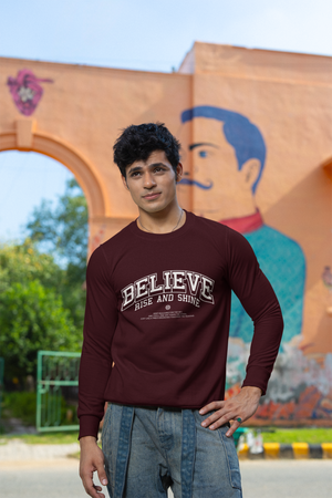 Men's Maroon Believe Oversized Graphic Printed T-shirt