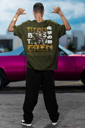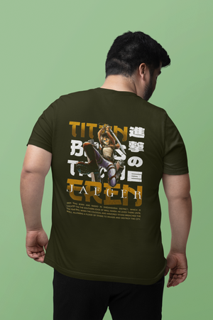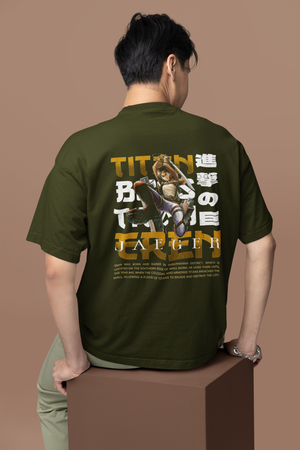 Men's Olive Green Titan Eren Anime Special Oversized Printed T-Shirt