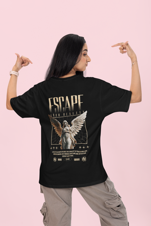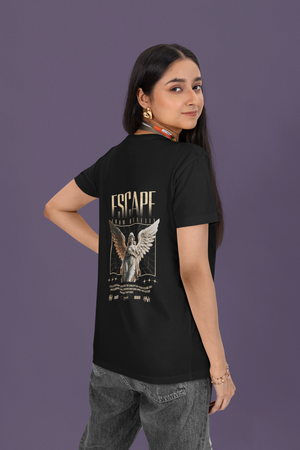 Women's Black Escape From Reality Oversized Printed T-Shirt
