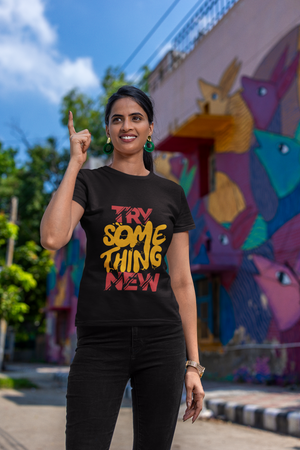 Break the routine and embrace new experiences with our "Try Something New" graphic t-shirt. Designed for the adventurous spirit, this tee features a vibrant, playful font that serves as a fun and stylish reminder to explore, discover, and grow. It's the perfect statement piece for travelers, creators, and anyone ready to take on a new challenge.