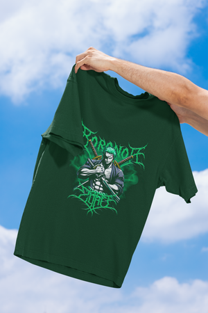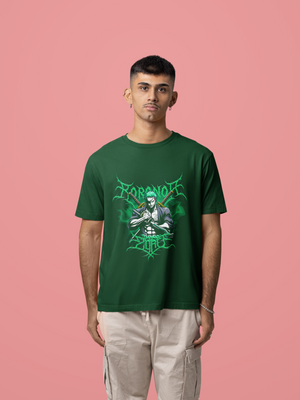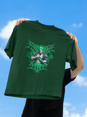 Men's Bottle Green Zoro Anime Special Oversized Printed T-Shirt