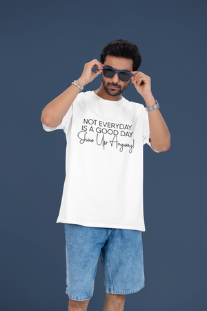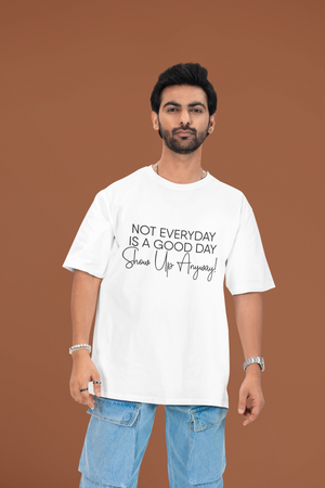 Men's White Not Everyday Is A Good Day Oversized Printed T-shirt
