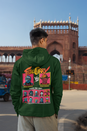 Men's Bottle Green Fatal Curry Printed Oversized Hoodie