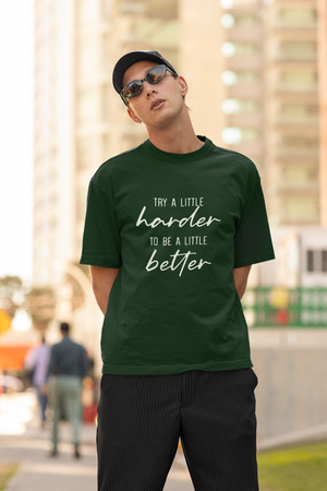 Men's Bottle Green Try A Little Harder Oversized Printed T-shirt