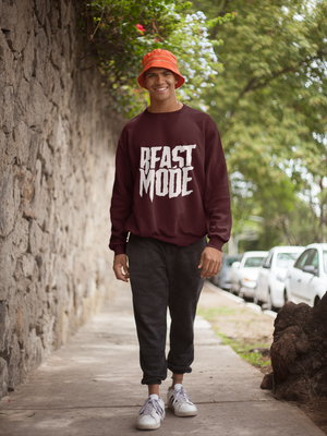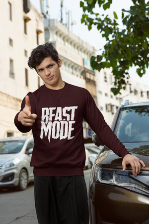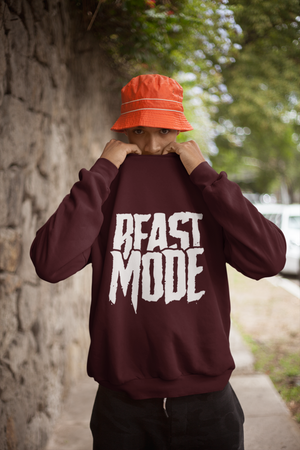 Men's Maroon Beast Mode Graphic Printed Sweatshirt