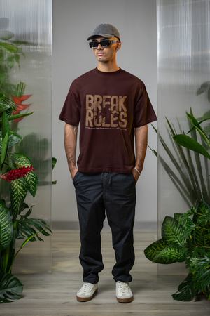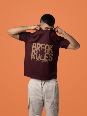 Men's Maroon Break Rules Printed Oversized T-Shirt