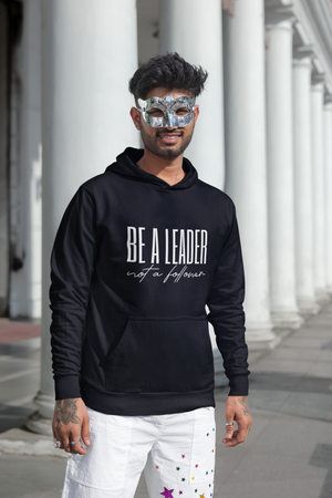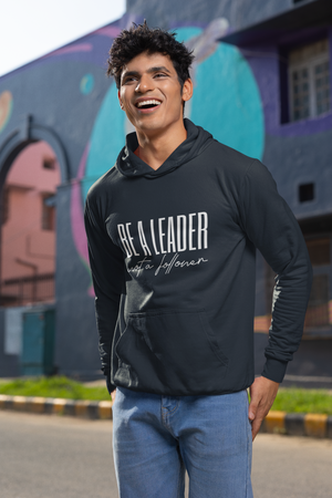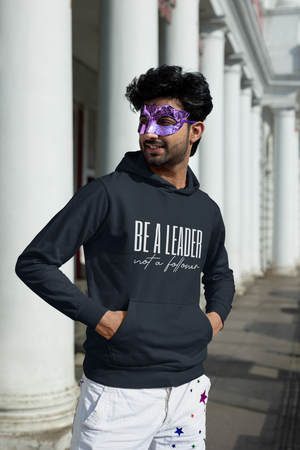 Men's Navy Blue Be A Leader Not A Follower Printed Hoodie