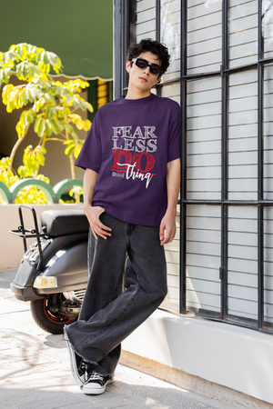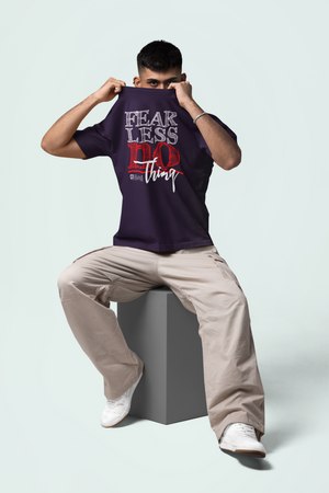 Men's Purple Fear Less Nothing Printed Oversized T-Shirt