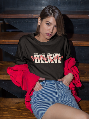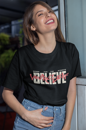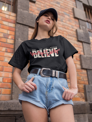Women's Black Believe Yourself Oversized Printed T-Shirt