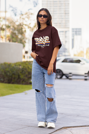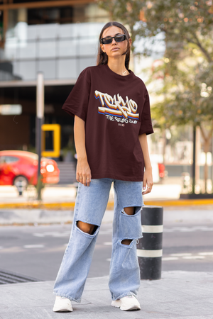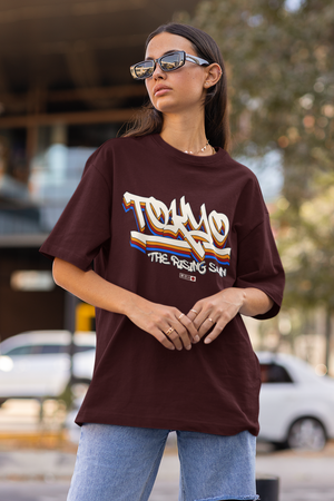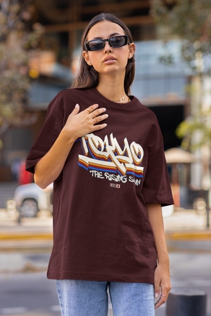 Women's Maroon The Rising Sun Oversized Printed T-Shirt