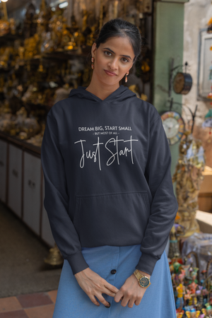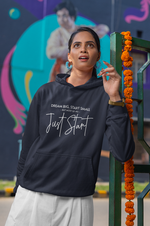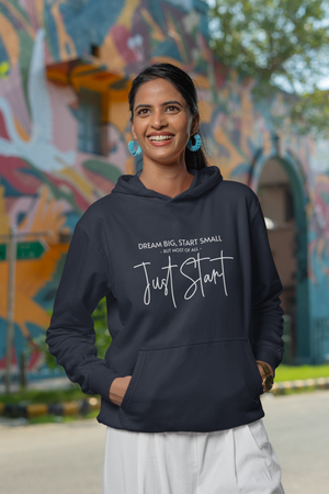 Women's Navy Blue Just Start Printed Oversized Hoodie