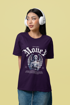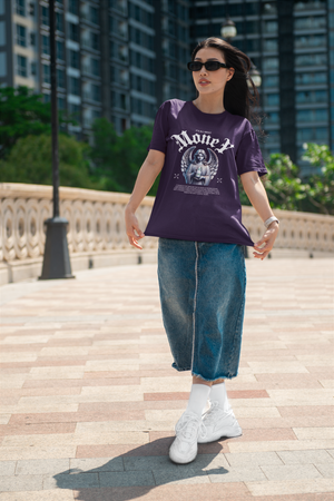 Women's Purple It's All About Money Oversized Printed T-Shirt