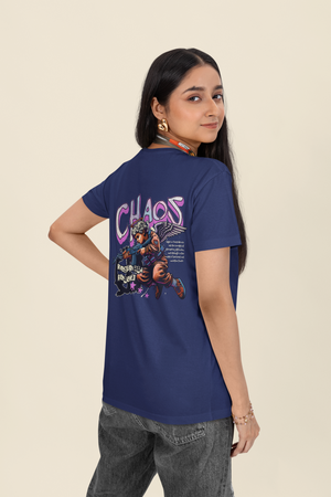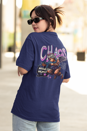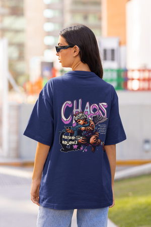Women's Royal Blue Chaos Oversized Printed T-Shirt