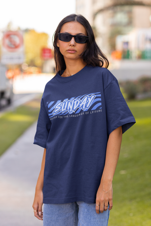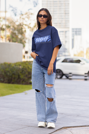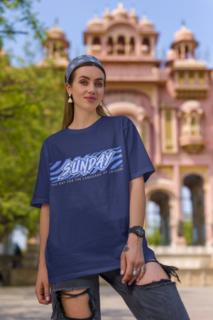 Women's Royal Blue Sunday Oversized Printed T-Shirt